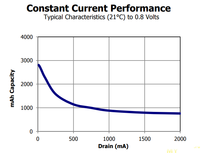 Что ж, пока батарейка разряжается, самое время поговорить о том, сколько же энергии вмещается в типоразмер АА в принципе, чтобы было с чем сравнить измеренный остаток. Согласно сайту Battery test лидером щелочных батареек сейчас является некая «Nanfu Alkaline Power Ring», которая вмещает аж 2864 мАч или 3600 мВтч. Если что, то это даже немного больше, чем у топовых NiMH аккумуляторов аналогичного типоразмера.