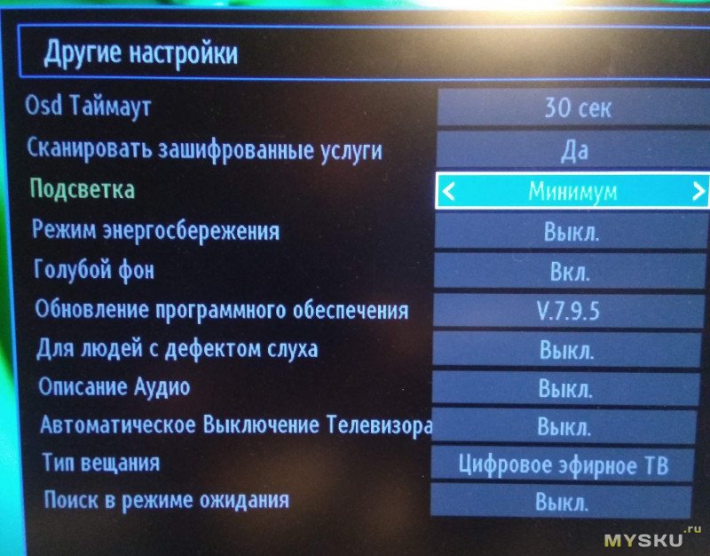 Теперь о снижении тока на светодиоды. Можно конечно в настройках убавить подсветку, да вот в меню такого пункта не оказалось. Есть еще инженерное меню, но туда без надобности лучше не лезть. Но можно включить экономный режим и таким способом её уменьшить.