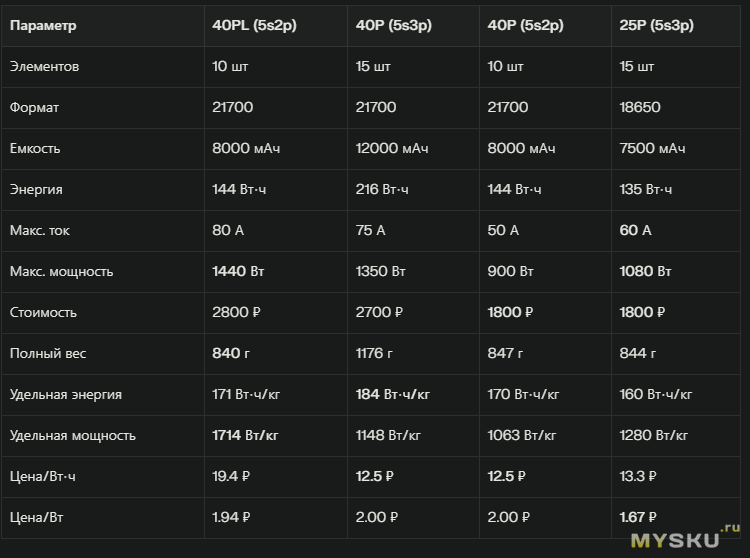 И конечно надо учитывать вид применения инструмента, массу акб и температуру эксплуатации — для бытового редкого использования на даче летом EVE 40P подойдет идеально(по формуле 5S3P), для уменьшения веса акб можно и EVE40PL использовать, в стоимости паритет. А если инструмент будет использоваться в профессиональных целях и в зимний период, то Molicel стоит рассмотреть.