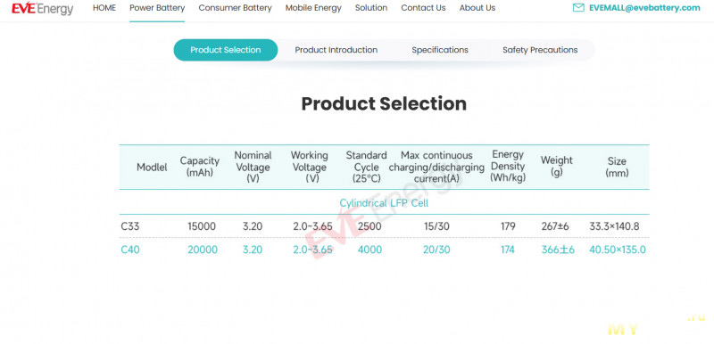 Есть конечно LFP ячейки с большими токами разряда, сайт EVE ссылка