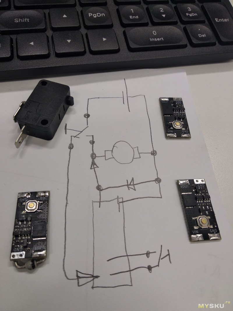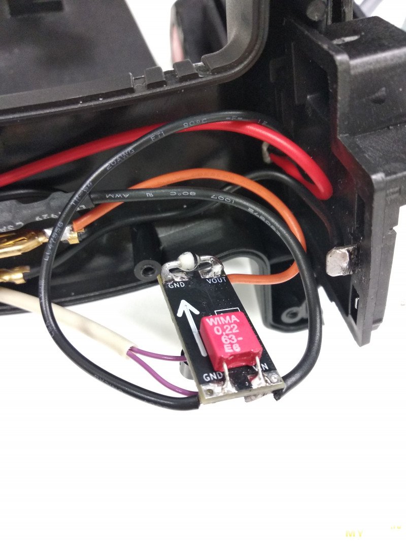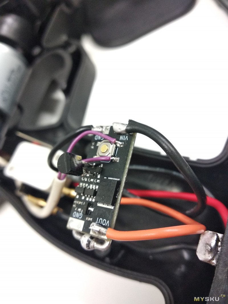 Одна печаль. Гашеткой перестал отключаться. Похоже через MOSFET в обратку «плюс» с аккумулятора идет на вход схемы. Там же диод туда, куда (не) надо.