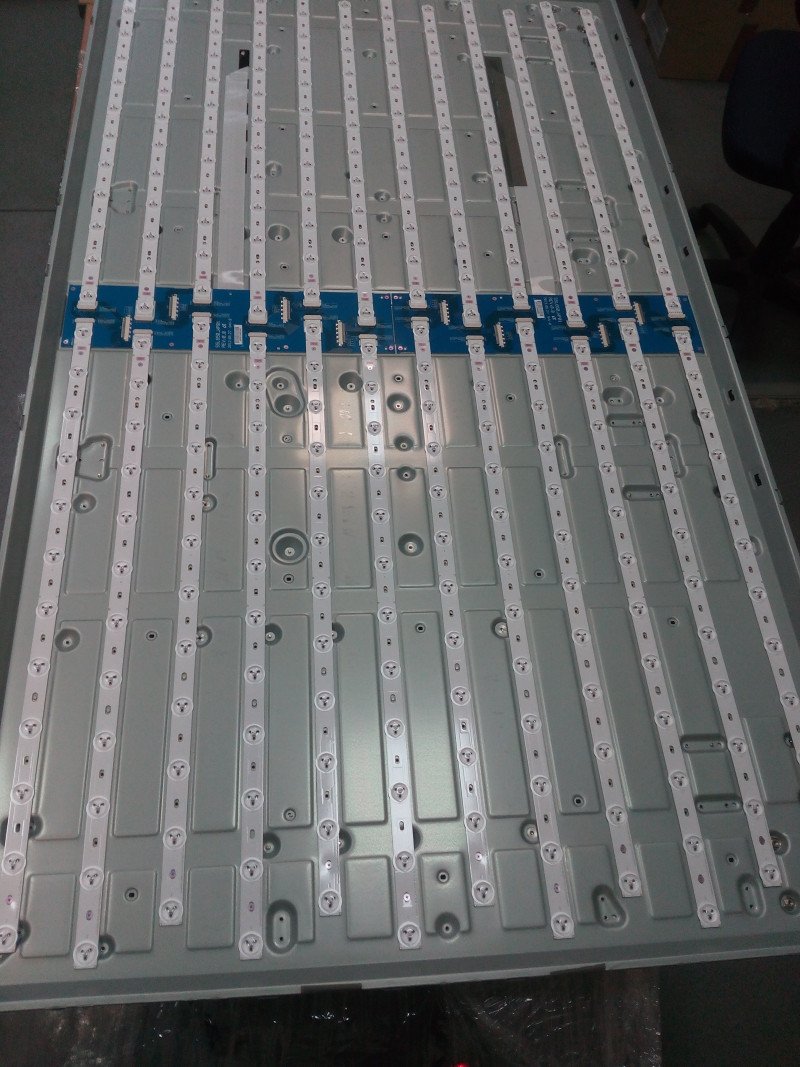 Планки подсветки с маркировкой LB49028 v0_002/LB49029 v0_01. Светодиоды 6v 40 шт на одной планке, соединение — 4 цепочки по 10 шт последовательно, каждая группа запитывается отдельно.