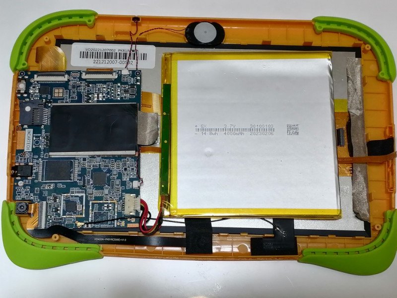 Динамик в планшете монофонический, потому что зачем целевой аудитории больше?Обе камеры сидят на одном шлейфе, WiFi чип распаян прямо на плате, поэтому поживиться модулем беспроводной связи тут не выйдет. Ну разве что антенной.