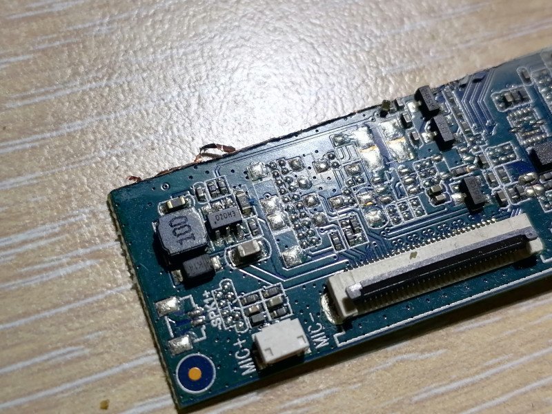 Обращает на себя внимание обилие контактных пятаков возле разъема тачскрина.Драйвер питания LED линейки для подсветки матрицы. Корпус SOT23-6, маркировка 020H3, даташит найти не удалось — может, кто опознает?