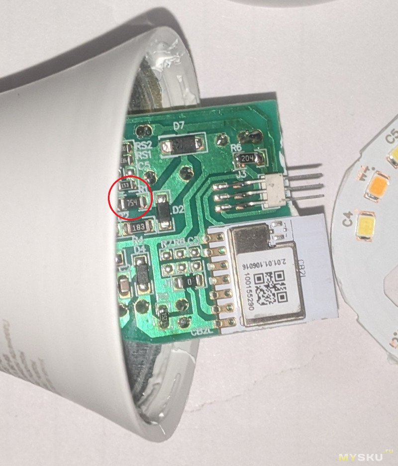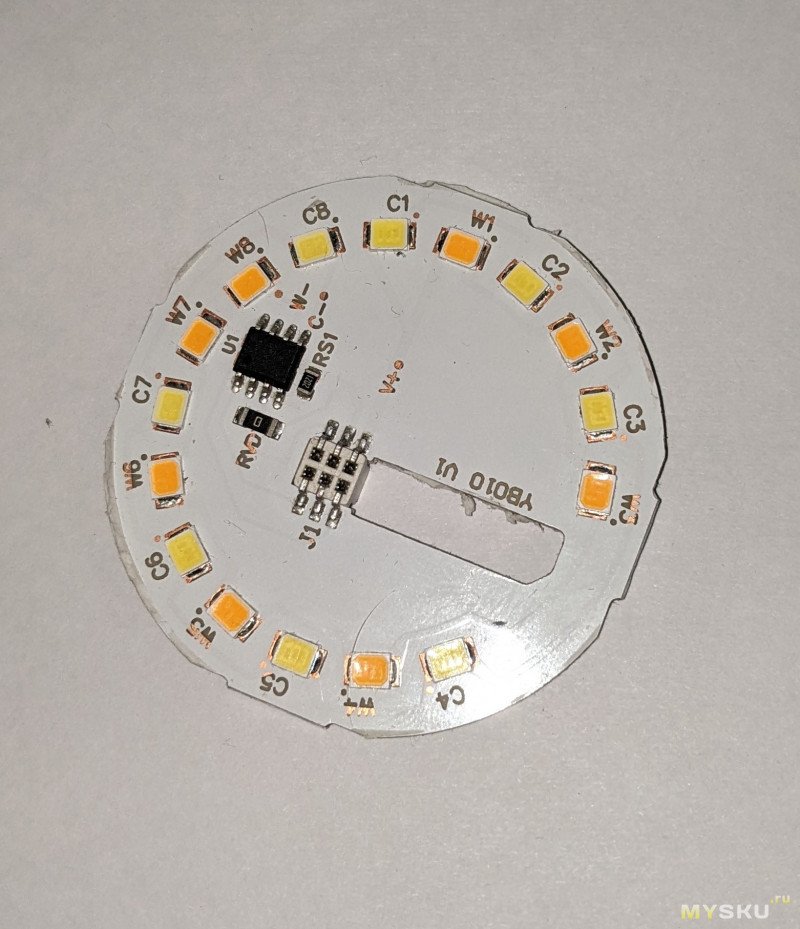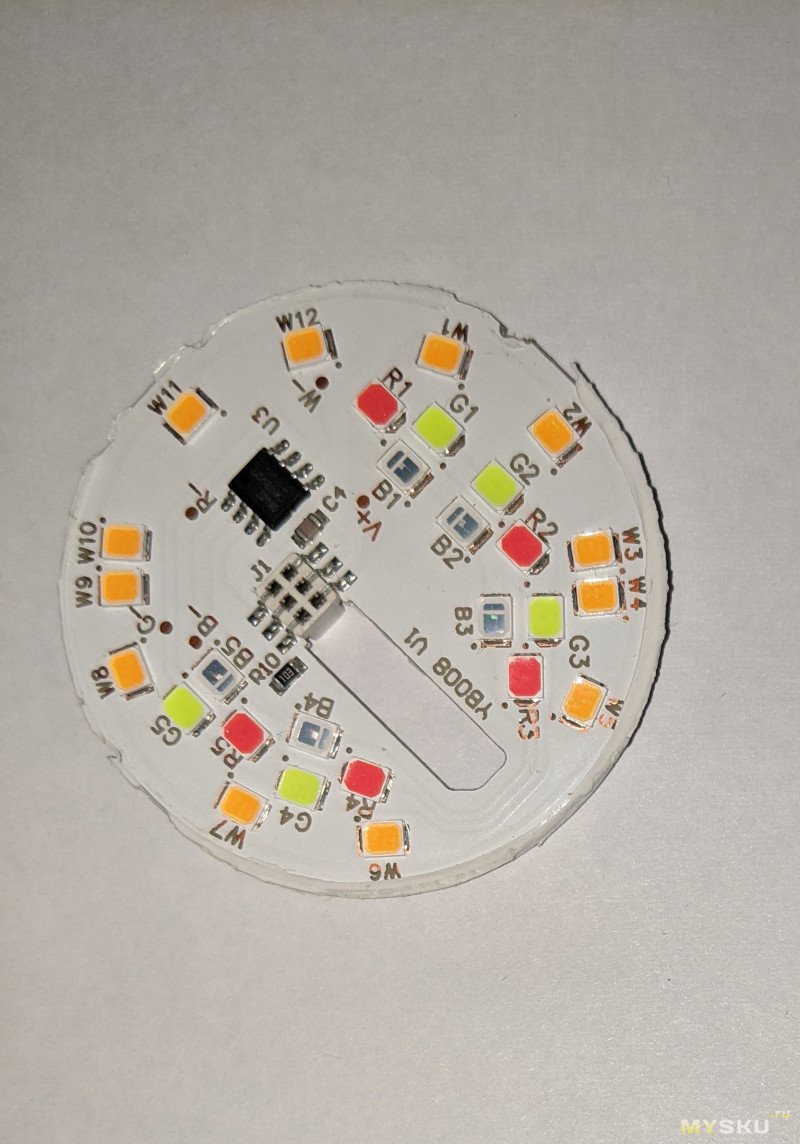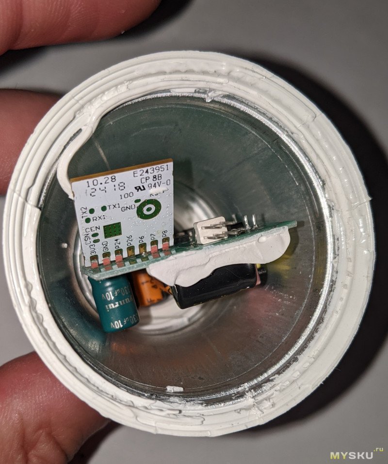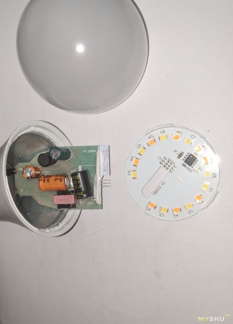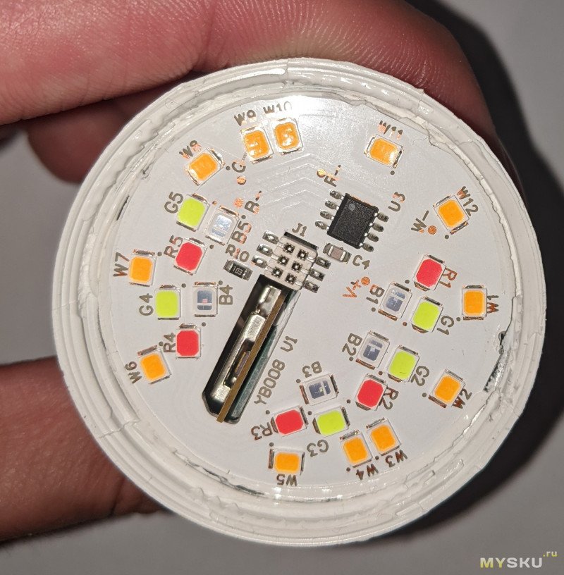 Я было начал разбирать RGB E27, но привычно открыв грушу рассеивателя, как на самой первой лампочке, увидел просто чуть расширенную версию контроллера E14 вместе с торчащим CB2L.