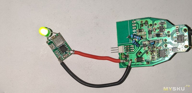 Я начал подбирать номинал резистора 750кОм и следить за напряжением. В итоге у меня на 30 кОм получилось добиться нечто вроде 5В. Без нагрузки оно не стабильно и прыгает до 50. Однако даже на холостом ходу понижающего преобразователя оно становится равным 5.1 Вольт. В принципе, это меня вполне устраивает. Раз уж этот преобразователь справляется 9 Ваттами нагрузки, пару ардуиноподобных датчиков он потянет легко. Можно поэкспериментировать с номиналом и найти значения для 12В и любых других напряжений. А если сильно переживаете за потребителей, поставьте на выход понижайку, она примет удар на себя.