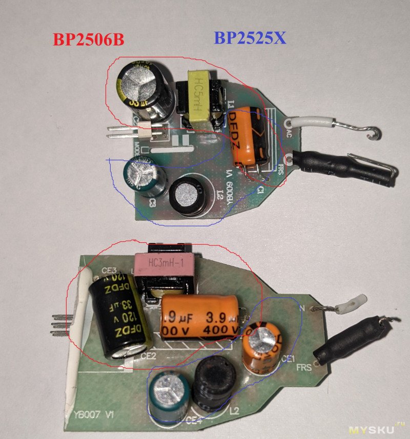 По управлению все, рассмотрим питание. Чутье меня не подвело — у двух видов плат одинаковая база — 2 микросхемы питания BP2506B и BP2525X. Кстати, вот и их силовая обвязка.