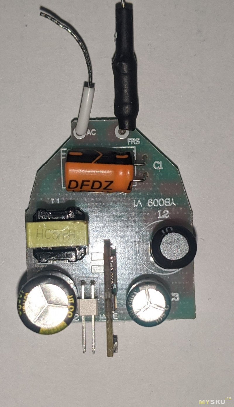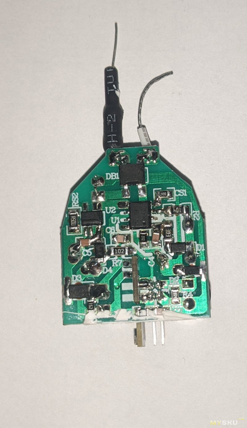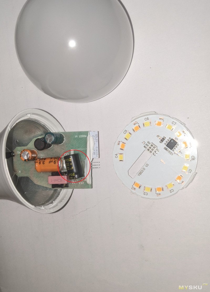 Плата питание выглядит как будто взяли из прошлой лампочки и сжали… в тисках. Очень похоже, только маленькое и кастрированное. А еще пайка какая-то тяп-ляп.