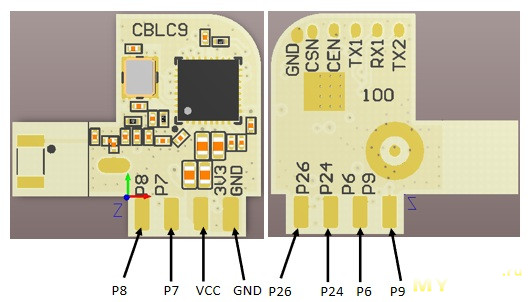 Управляющий модуль на этот раз CBLC9. Это все тот же BK7231N, но в другом исполнении. Фактическая разница только в доступности тех или иных пинов.