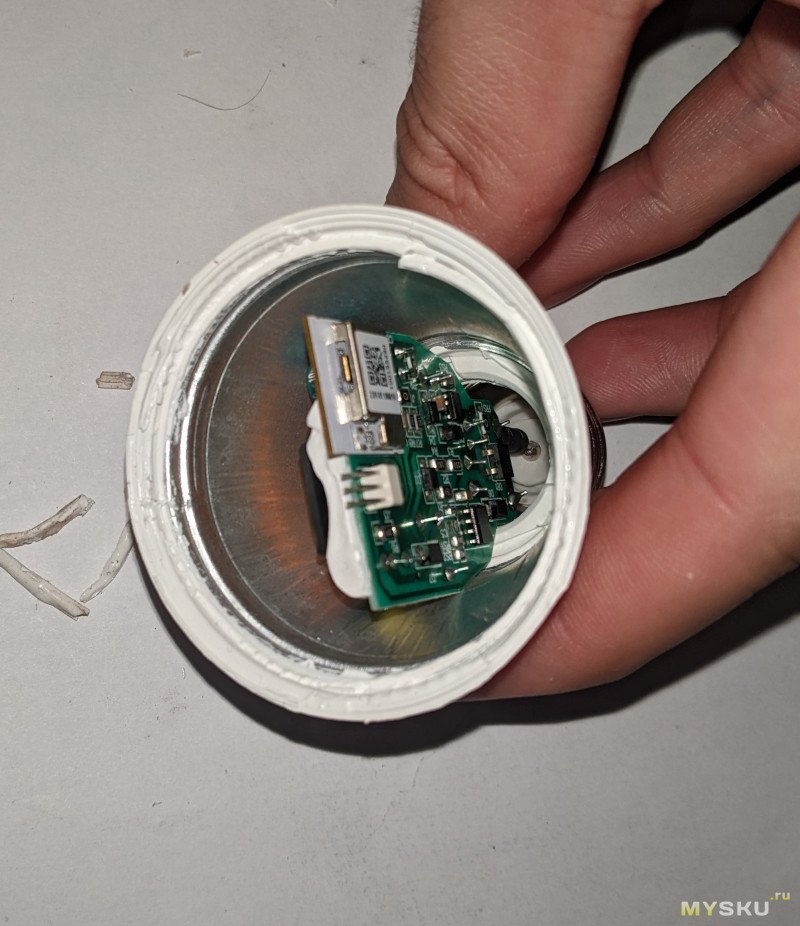 Мне сразу перехотелось разбирать дальше, ведь по сути, я увидел просто гибрид двух предыдущих ламп. Но ради проверки гипотезы о вскрытии без повреждения, я все-же полез глубже.