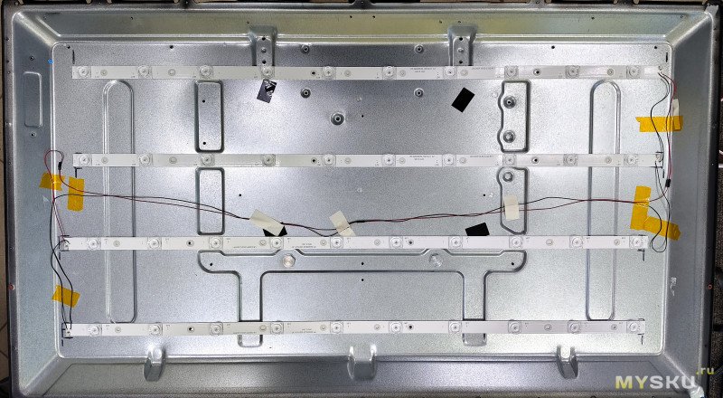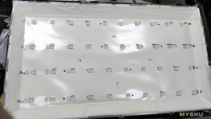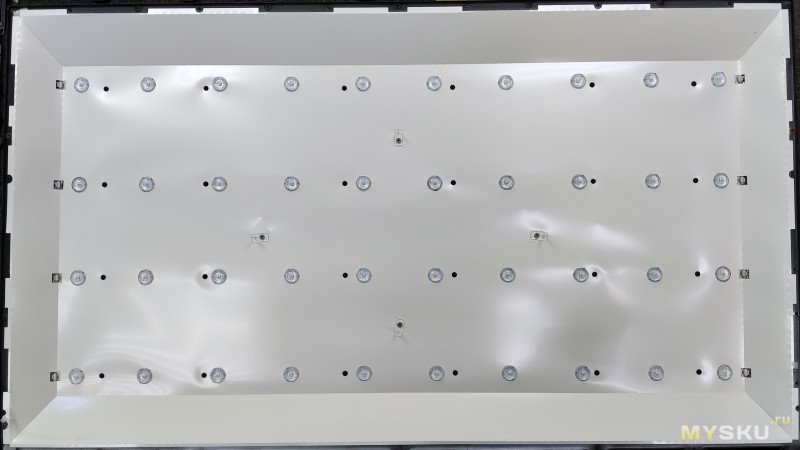 Снимаем рассеивающие пленки (не разделяем их) и видим подсветку — 40 светодиодов (3V). Я уже вижу несоответствие — заказанные планки совсем другие.