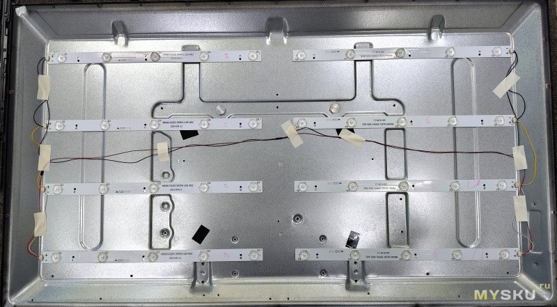 Но смотрю я на несовместимые планки и думаю: по длине заказанные планки влезают в корпус, светодиоды установлены 3v 150ma (проверил с помощью лбп) как и родные, да и количество светодиодов в 10 шт на планку позволяют без особых переделок внедрить их в этот телевизор.