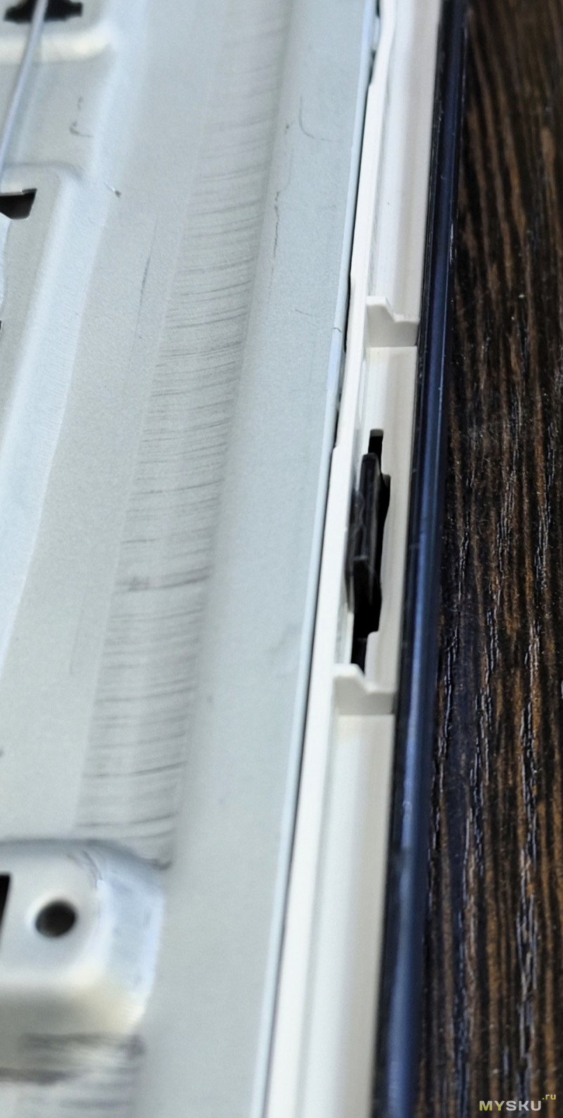 Теперь отщелкиваем внешнюю рамку. Она держится за внутреннюю пластиковую белую рамку креплениями — чем то плоским (я использую лопатку) отщелкиваем.