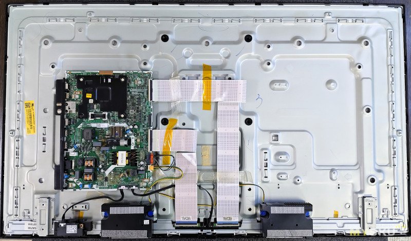 Снимаем и откручиваем всё, что снимается — плату, динамики, крепления ножек, отключаем кабели и шлейфа на матрицу.