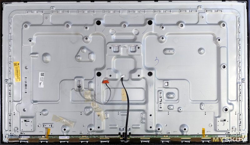 Телевизор с проблемой — нет изображения (но если посветить фонарём его видно). Выяснить у владельца какая была картинка до поломки (с пятнами или затемнениями) не удалось, поэтому перед заказом з/ч разберем телевизор и посмотрим на состояние рассеивателя.