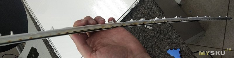 По ней или модели тв заказываем новые планки. Где брать — выбор за вами, где удобнее. Где я покупал — уже нет, ссылку не дам. Рассеиватель заказал на озон, там сейчас единственное предложение, но можно купить на wb или авито (можно найти новый оригинал). Смотрите по отзывам. Главное — берите с белым отражателем, если конечно он поврежден как у меня.