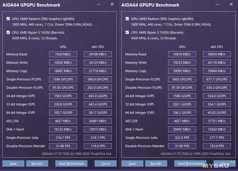 AIDA GPGPU Benchmark. Разница ощутима.