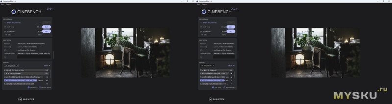 Cinebench 2024. Чуть лучше результат в многоядерном режиме при двухканале.