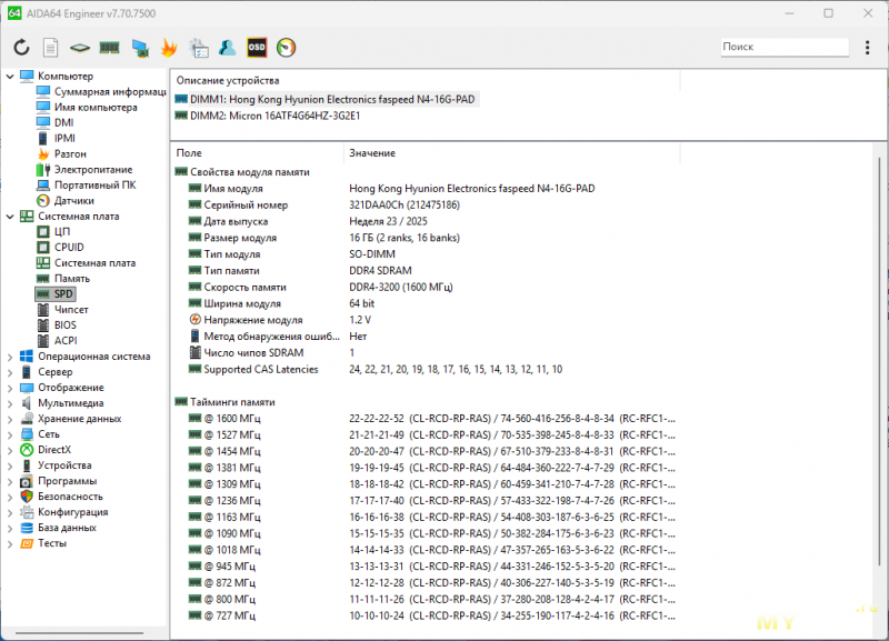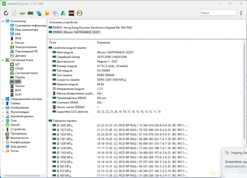 Память Micron, 32 ГБ, ddr4 3200МГц, тайминги 22-22-22-52, такие же, как и у faspeed в Ninkear m7.
