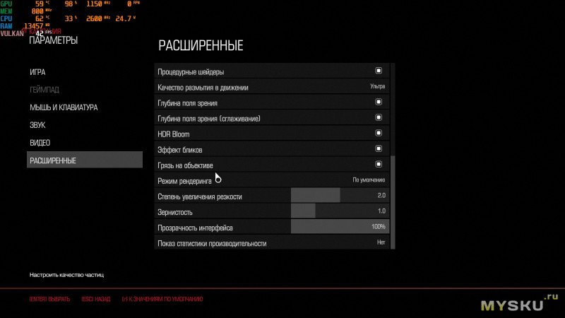 Независимо от настроек качества графики FPS может быть выше 60, так и проседать до 30 и меньше.