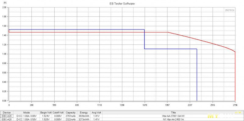 Xtar в новой серии аккумуляторов убрал ступеньку и там напряжение как раз падает плавно. Но все равно большую часть времени напряжение держится 1.5 вольта, и только ближе к концу разряда плавно падает.