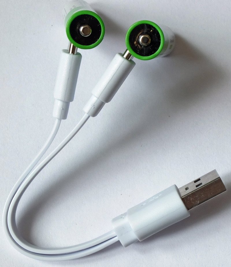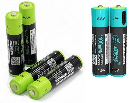 Лет 10 назад китайцы придумали забавную штуку — запихивать в стандартные корпуса для Ni-MH/Ni-Cd (ААА, АА, С, D) литий-ионные скрутки, а в головную часть сего агрегата помещать USB-разъем, платку зарядки литий-иона и понижайку до 1.5В. Смысл: чтобы пользователь не покупал отдельный зарядник для Ni-MH аккумуляторов, а использовал обычный, для телефона. Впрочем, это теперь общеизвестно.