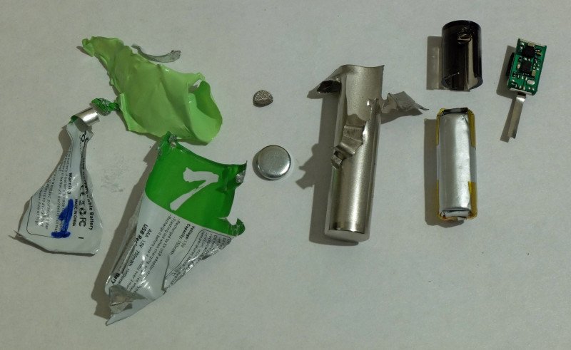 • Литий-ионная скрутка заключена в термоусадку салатного цвета и не имеет опознавательных знаков. На вскрытии ААА у КвП маркировка скрутки была. Это первое свидетельство того, что ААА у меня и КвП от разных ОЕМ-производителей.