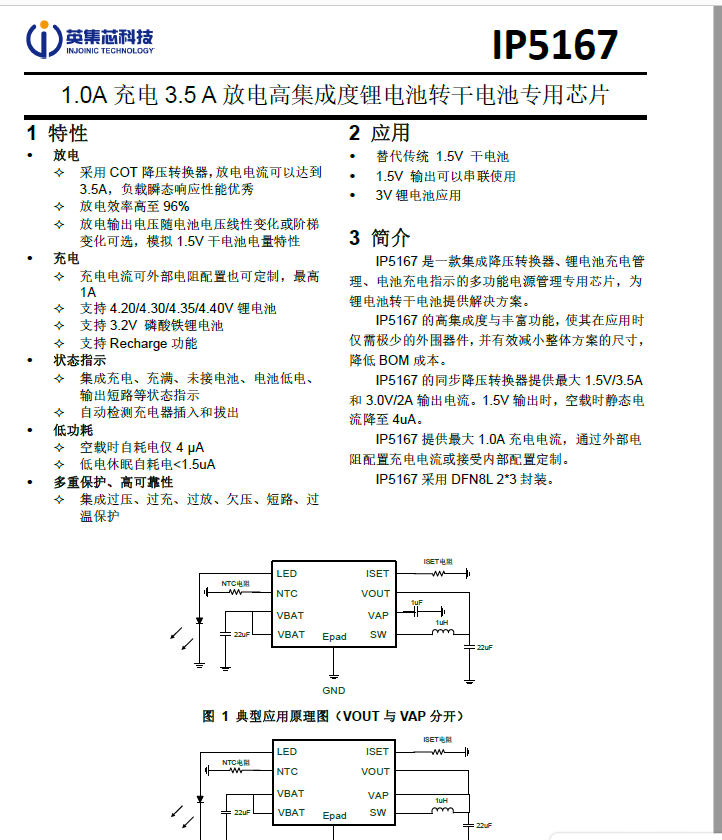IP5167 — это многофункциональная микросхема управления питанием, которая объединяет в себе понижающий преобразователь, управление зарядкой литиевых аккумуляторов и индикацию заряда аккумуляторов, предоставляя решение для преобразования литиевых аккумуляторов в сухие батареи.