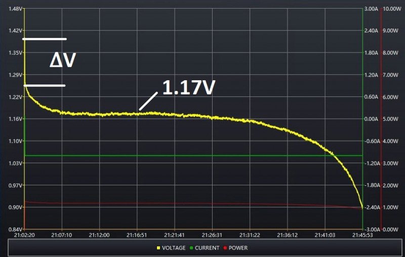 Возможно наличие еще одной дополнительной фичи: вторая кратковременная «предсмертная» ступенька по напряжению ~1.1В для сигнализации потребителю, что запас электричества на исходе, надо что-то делать.