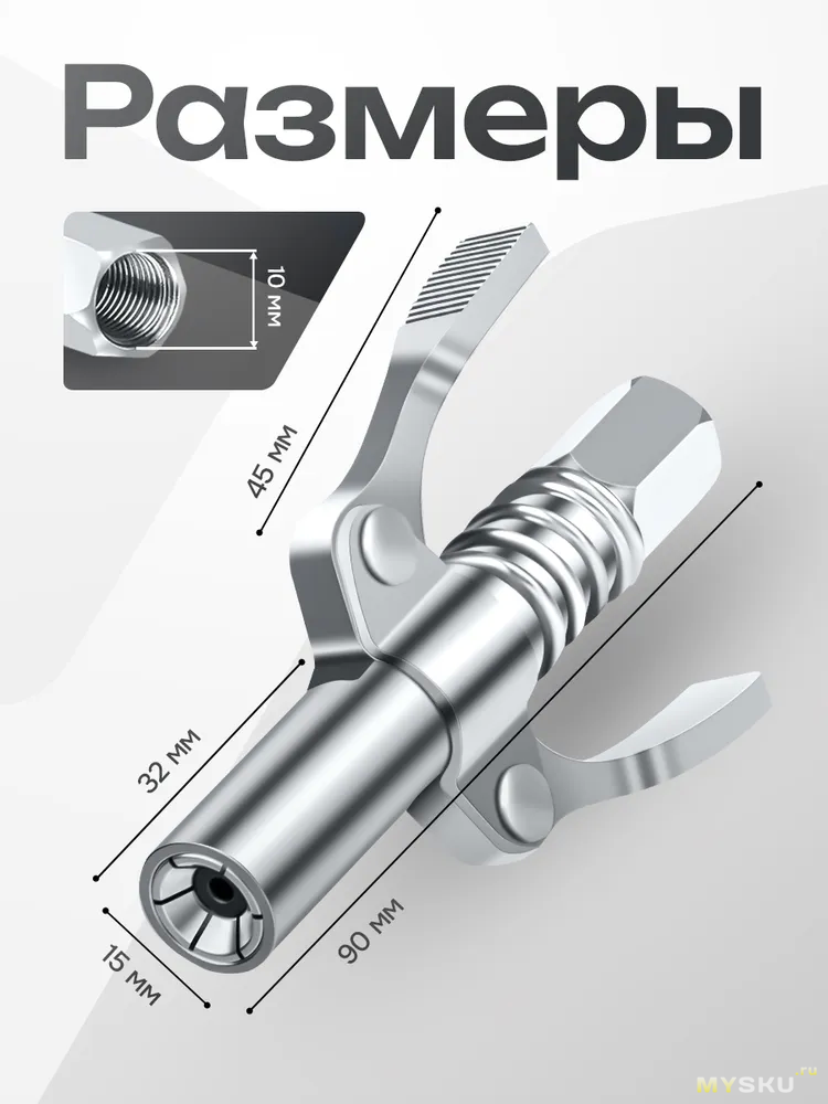 обозреваемый наконечник тоже имеется. используется с угловой насадкой, чтобы не снимать колёса для смазки нижних опорных пальцев
