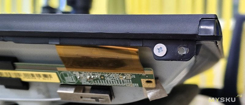 Снизу извлекаем из креплений платы матрицы и подклеиваем их скотчем, что бы не мешались при снятии.