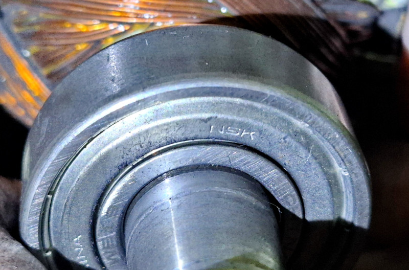 Передний подшипник, где насажен шкив, более-менее живой, а вот задний — совсем плох.Подшипники — настоящей японской фирмы NSK, но тоже сделаны в Китае: