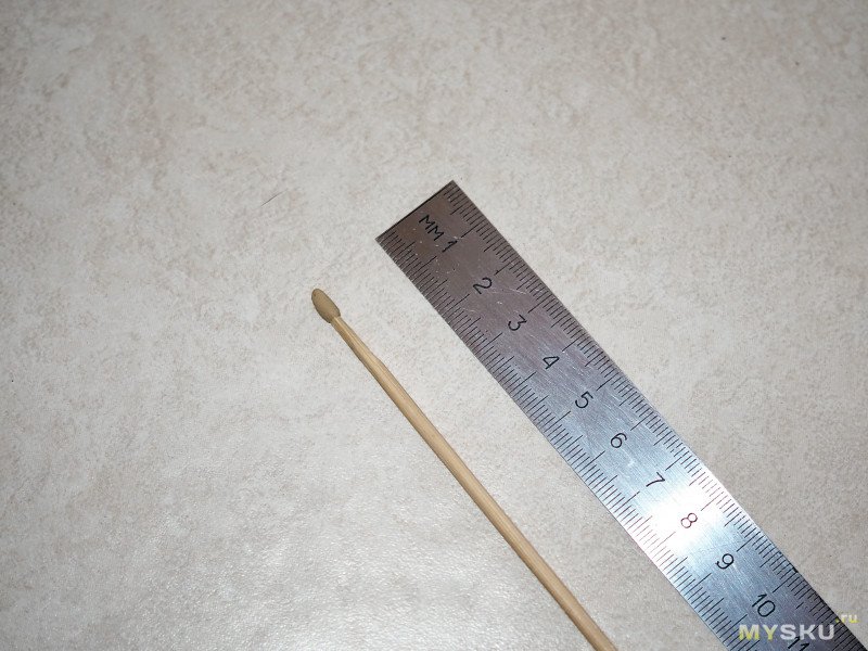 — Бамбук. Длина — около 64-66 мм или 2,5 дюйма. Диаметр — 1,5 мм. И каким образом эта малышка проникла в стиральную машину?