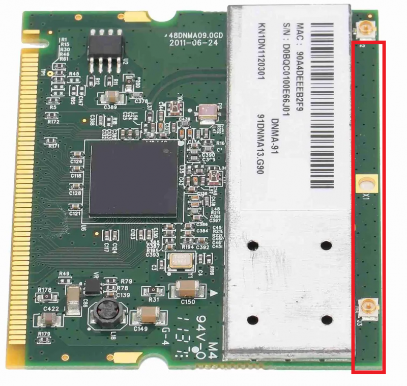 Первый провал — плата длиннее на 3-4 мм, чем отсек под неё. Честно говоря, совсем не ожидал, что слот miniPCI или устройство под этот слот может быть нестандартизированным. Ну что ж, будем «аппаратно» дорабатывать.