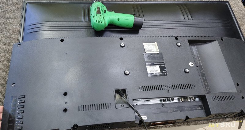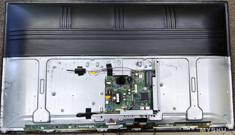 Начнем разборку. Кладем телевизор экраном вниз на ровную поверхность, откручиваем винты задней крышки и снимаем её.