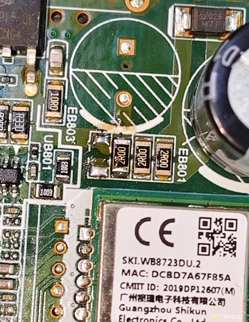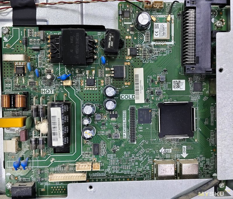 Резисторы датчика расположены на плате TP.SK508S.PB802 рядом с конденсатором EB801.