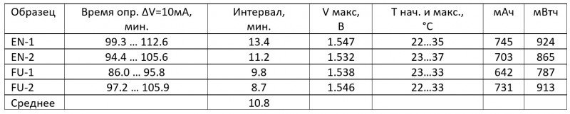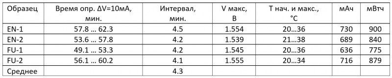 Причем, для EN-1 и EN-2 при 300 и 400 мА «дельта» не была поймана. Поэтому измеренные значения «ёмкости» для 300 и 400 мА:— фактически одинаковы;