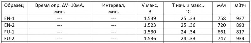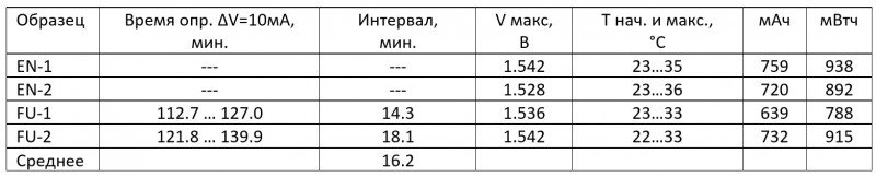 Причем, для EN-1 и EN-2 при 300 и 400 мА «дельта» не была поймана. Поэтому измеренные значения «ёмкости» для 300 и 400 мА: