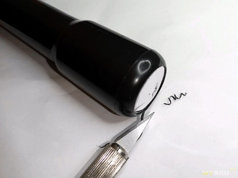 Ручка бездонника накручивается на кольцо держателя корзины. С обратной стороны рукояти мне не понравились острые грани пластика — срезал их скальпелем.