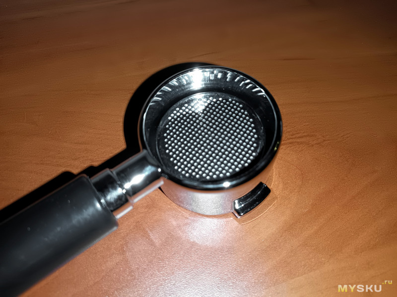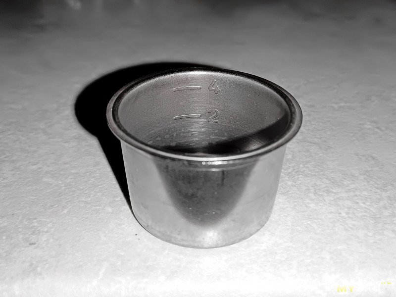 Из-за большого стального бойлера температура не пляшет, она относительно стабильна. Металлическая группа хорошо прогревается и не дает никаких просадок по температуре. Корзина «на 2 чашки» вмещает в себя около 14 грамм молотого кофе нужного помола.