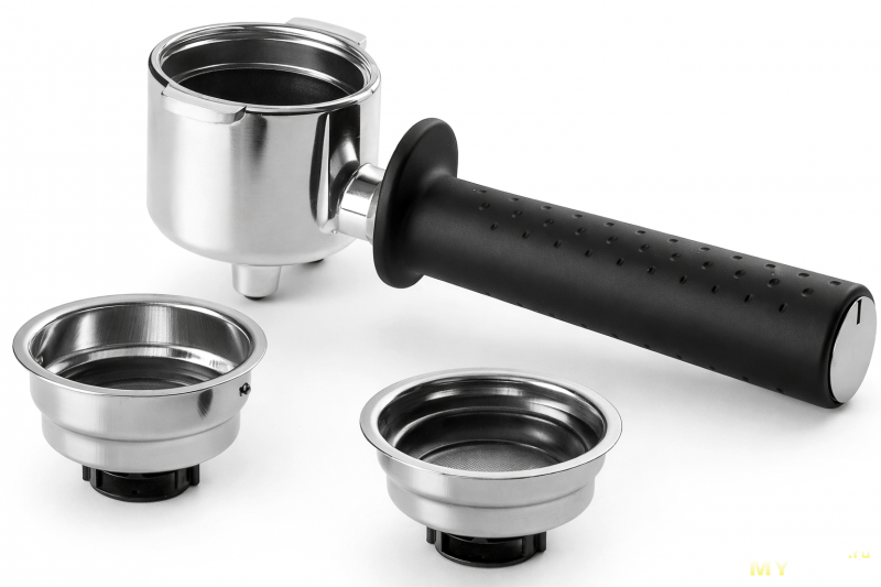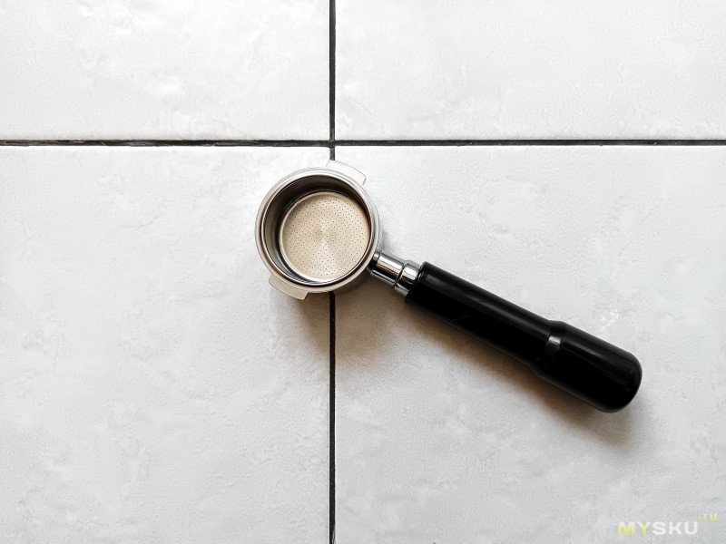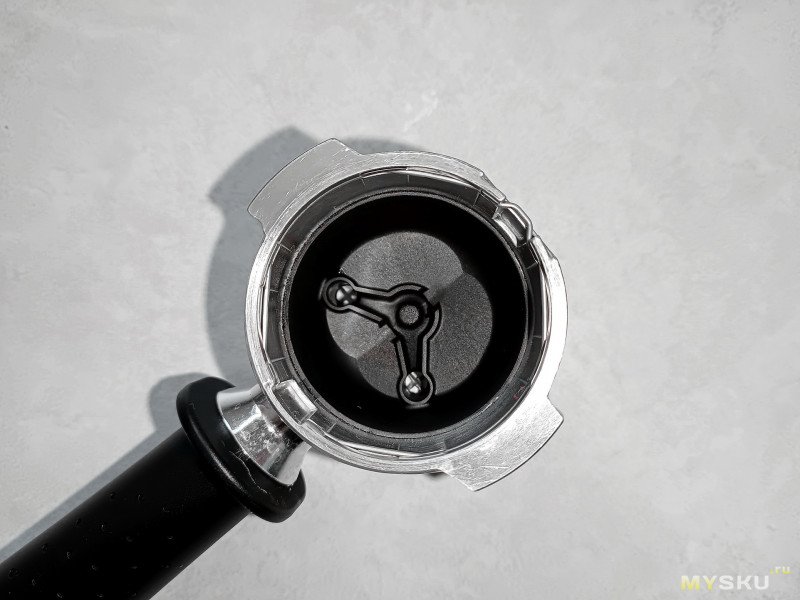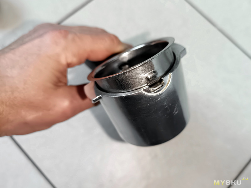 Рожок с корзиной под 54 мм оснащен рычагом для выброса гущи, что невероятно удобно. Нажал на рычажок — «кофейная таблетка» вылетела в ведро.