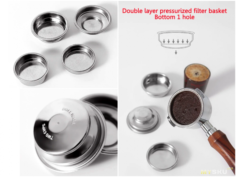 Двойные корзины есть под разные диаметры рожков. В моем случае эти корзины очень плотно вошло в кольцо рожка бездонника. И не выпадали при выбросе кофейной шайбы!
