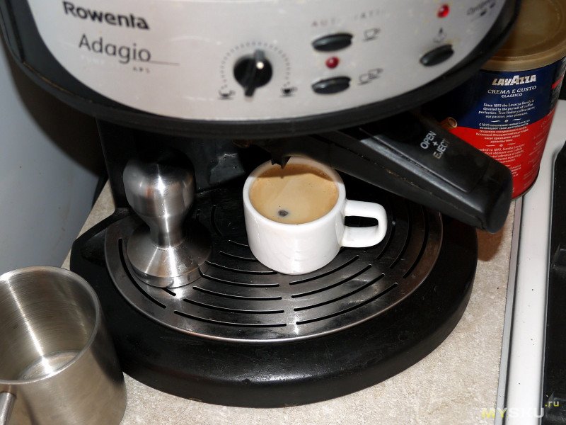 Может, давление маловато? Да, помпа на 15 бар говорит об аппарате бюджетного уровня. Тогда почему кофе у Rowenta Adagio ES180F при той же помпе получался превосходный?