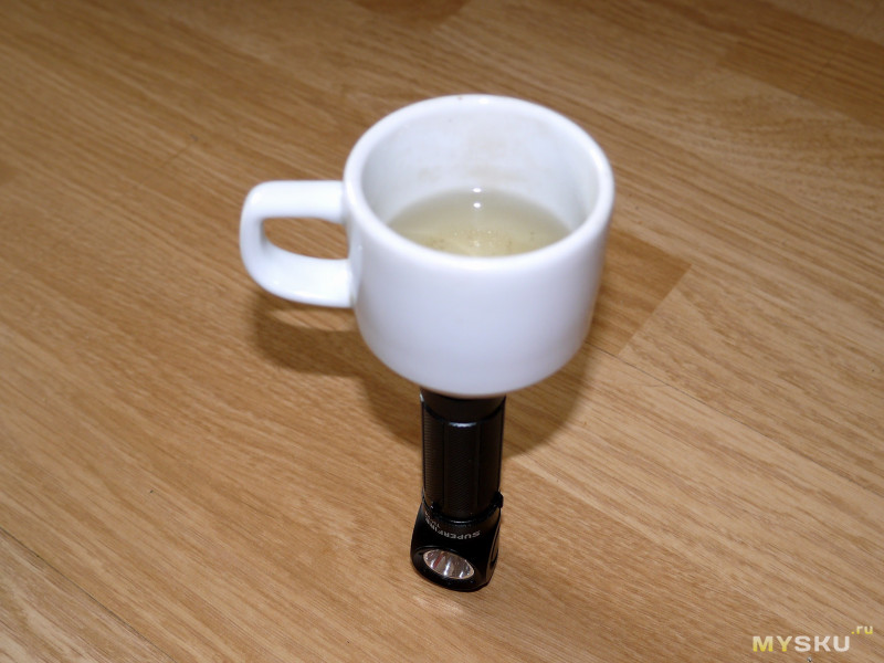 Я использовал фонарик Superfire TH04 — сливал часть воды и ставил чашку на его магнит. Плавно водил магнитом по дну чашки снизу и смотрел как перемещаются крупицы. Если частицы «тянулись» за магнитом, то сливал осадок и повторял процедуру очистки корзины.