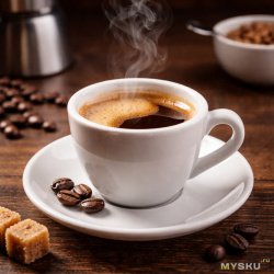 Эти тонкости я узнал гораздо позднее. Во время приготовления напитка бездонник брызгал во все стороны. Но кофе получился именно такой как я хотел — крепкий и насыщенный. Правда, без крема (без пенки). Также заказал корзину для бездонника на 4 чашки. Вот с ней кофе получился как «двойной удар» — крепкий и с пенкой. Идеальная емкость для такого напитка — большая чашка.