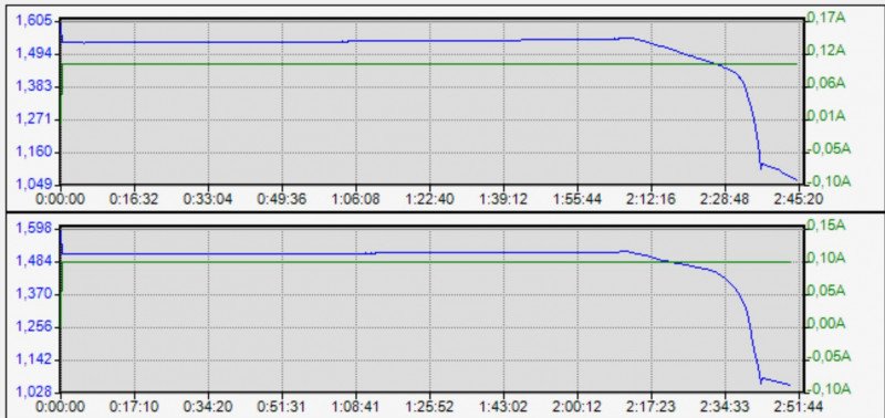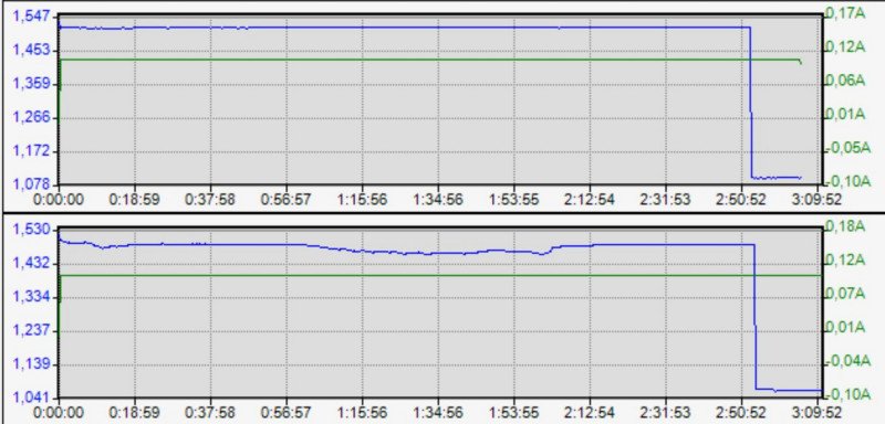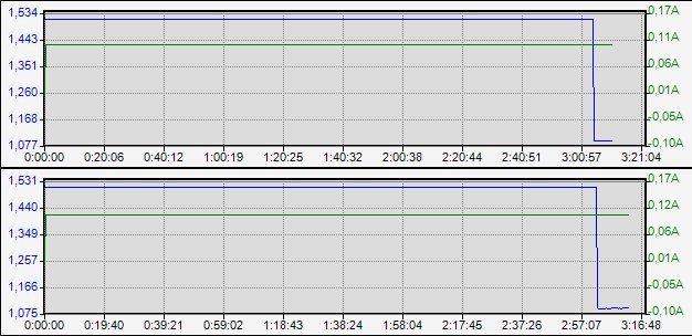 Beston-1 вверху, Beston-2 внизу.Разряд током 100мА. Beston-1 вверху, Beston-2 внизу.