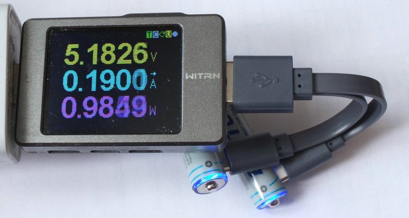 Ток заряда каждого из акку — 95 мА. Идиотизм. В результате полный заряд занимает чуть больше 2.5 ч.