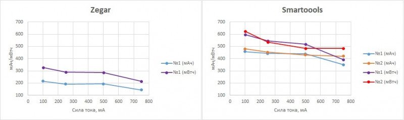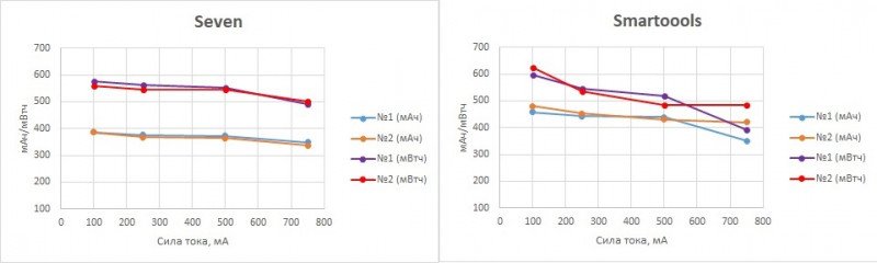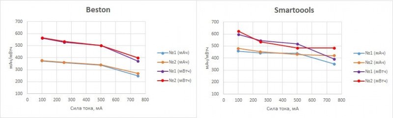 На первый взгляд, Beston выглядит чуть похуже, но не следует забывать, что разрядные кривые Smartoools аналогичны Ni-MH/Ni-Cd со всеми вытекающими (просадка напряжения на больших нагрузках, низкое напряжение в последней трети разрядной кривой).