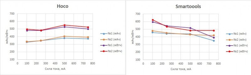 Забавный момент: разряжать Hoco бОльшими токами более эффективно, чем малыми. Я сначала подумал, что где-то наслесарил и повторил разряд на 100мА. Результат фактически такой же. А потом вспомнил, что в одном из обзоров darken123 тоже наблюдал подобную странность.