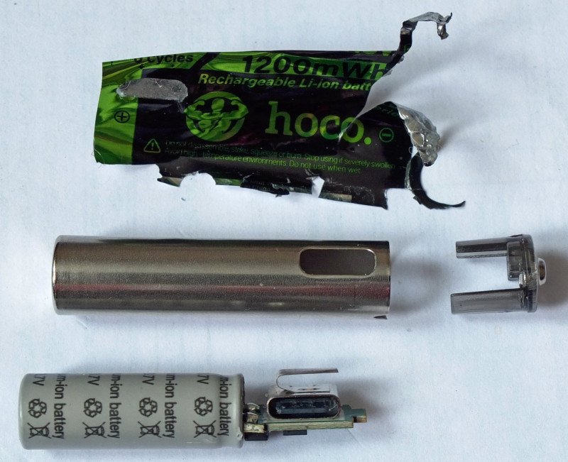 Забавный момент: разряжать Hoco бОльшими токами более эффективно, чем малыми. Я сначала подумал, что где-то наслесарил и повторил разряд на 100мА. Результат фактически такой же. А потом вспомнил, что в одном из обзоров darken123 тоже наблюдал подобную странность.Потроха